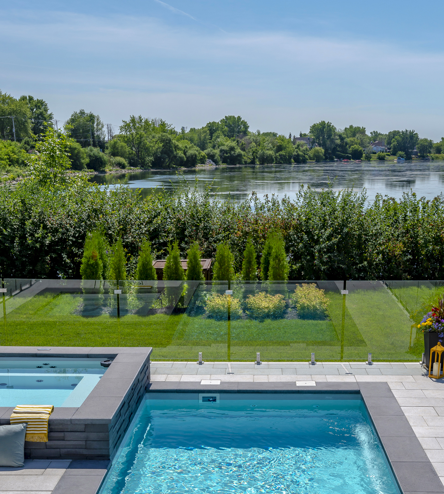 Fiberglass pools are made from a composite material that is strong, lightweight, and flexible. Genesis Pool are made in Canada for northern climates and all others. Our fiberglass pools are made with high-quality materials and advanced manufacturing techniques to ensure they are built to last.